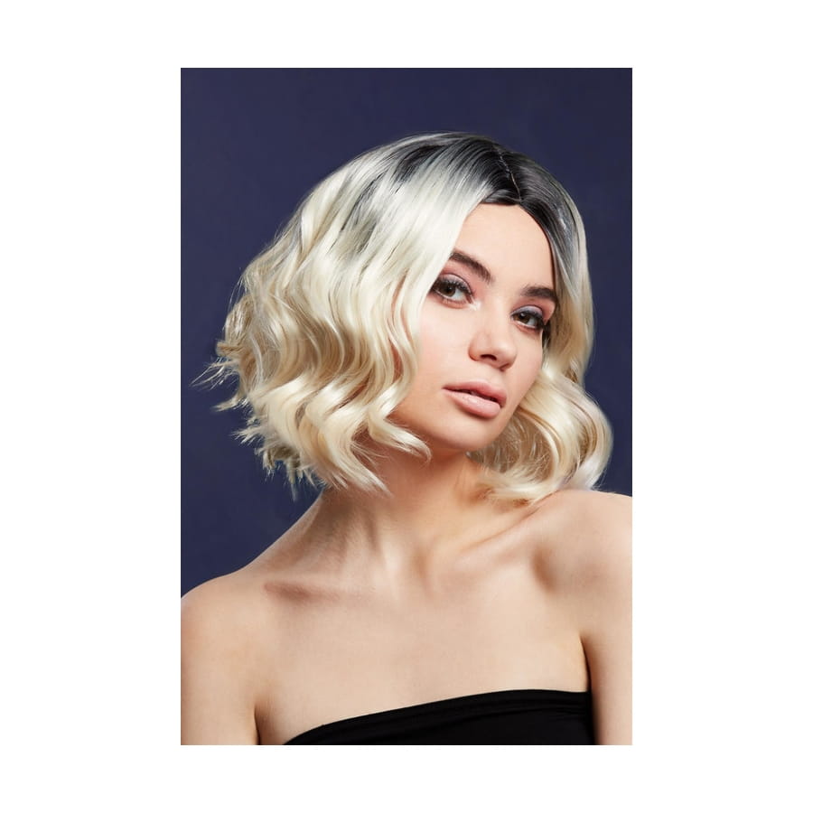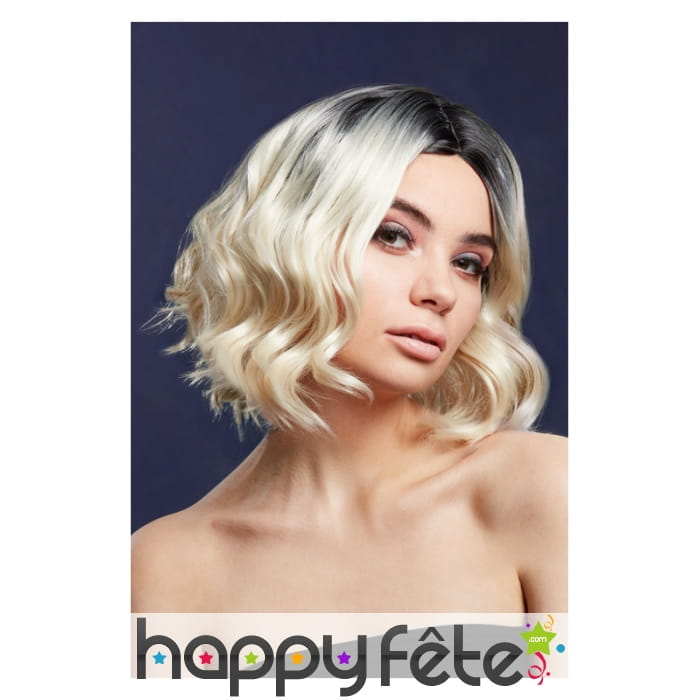 Pimentez votre look de séductrice avec la perruque blonde courte bouclée avec racines noires.