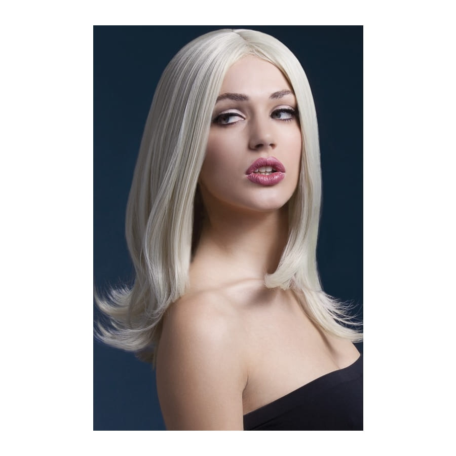 Vous voulez changer de couleur sur un coup de tête ? Ce n'est pas la peine de vous teindre les cheveux. Nous avons la solution appropriée pour celles qui désirent secrètement être blondes ! Cette perruque est idéale, avec une raie au milieu, et une couleur blonde bien marquée. En résumé, vos cheveux seront raides, mi-longs, avec un peu de volume au niveau de la nuque pour plus de fantaisie et de charme.