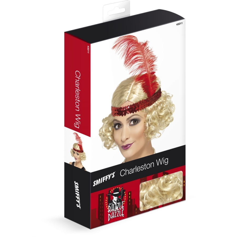 Pour un mariage Charleston, ou pour une fête dans le même thème, il est toujours difficile de choisir la tenue idéale. La petite robe et les accessoires qui vont avec sont assez facilement trouvables. Mais quand il s'agit de la coiffure c'est plus compliqué ! Pour vous simplifier la tâche, nous avons mis à votre disposition cette magnifique perruque Charleston. Les cheveux sont courts et ondulés, d'un blond doré, et orné d'un bandeau rouge sur lequel est fixé une magnifique plume rouge. C'est magique, en quelques minutes, vous êtes transformée en danseuse de cabaret.