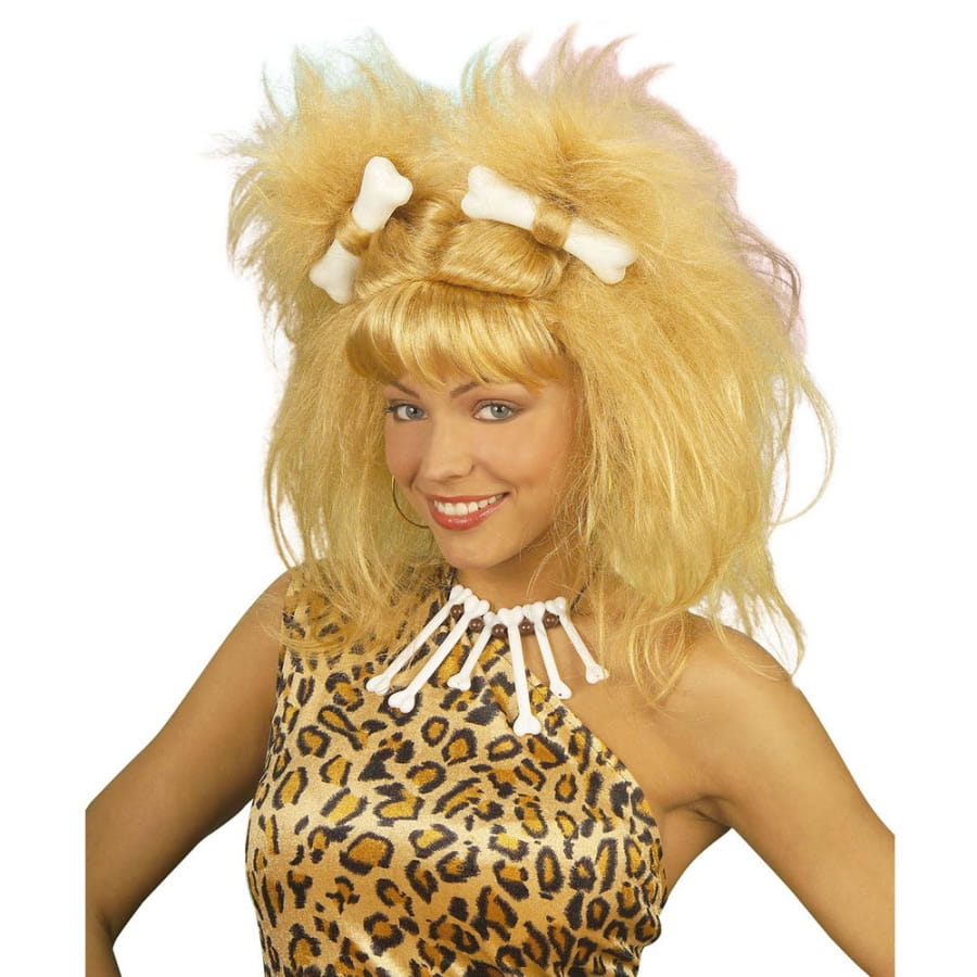 Pensez à vous procurer cette perruque blonde de femme des cavernes avec os, sous licence La Famille Pierrafeu.