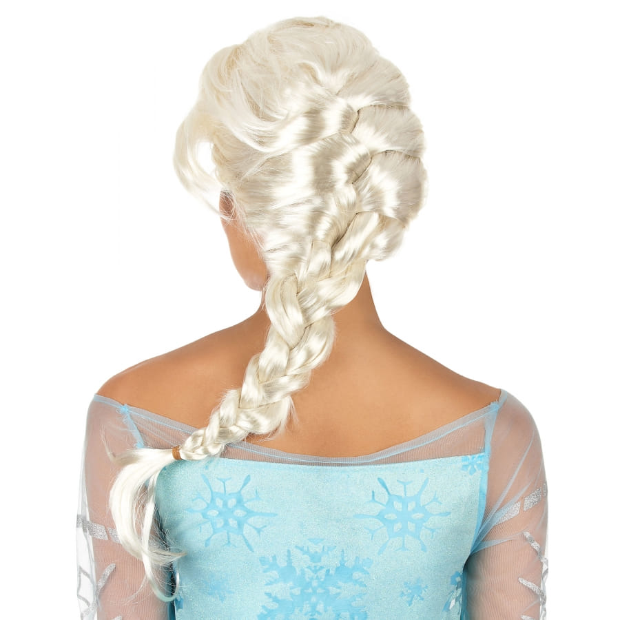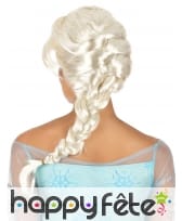 Cette perruque faite en fibres synthétiques blond clair possède une grosse tresse terminée par un élastique amovible.