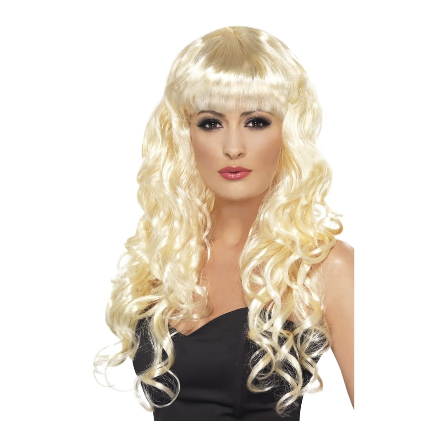 Perruque de sirène, de couleur blonde, pour femme ou adolescente. Les cheveux sont très longs, bouclés avec une frange. Elle est idéale pour un déguisement de personnage féerique ou pour une tenue sexy à l'occasion d'un enterrement de vie de garçon ou de jeune fille.