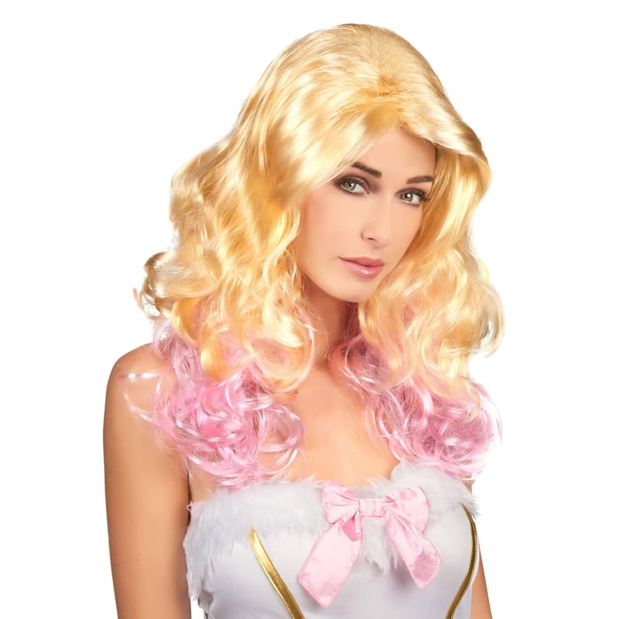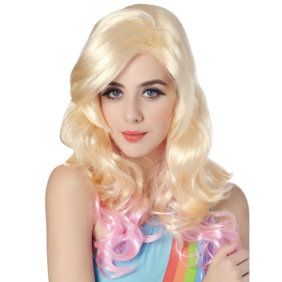 La perruque blonde ondulée avec pointes roses est pour femme.