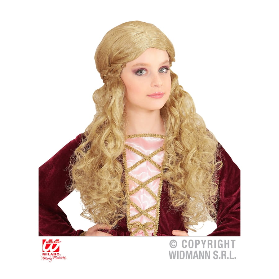 Au Moyen Age, les jeunes filles avaient une façon particulière de se coiffer. Reproduisez facilement le look de cette époque en vous munissant de cette perruque blonde ondulée style médiéval pour enfant fille. La chevelure est longue, blonde et légèrement ondulée. Portée avec une longue robe aux manches légèrement évasées, cette perruque transformera votre enfant en une jolie princesse.