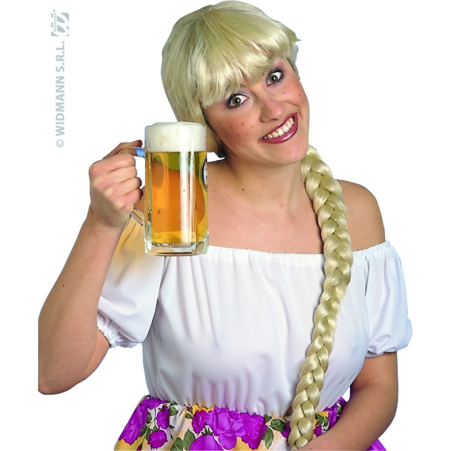 Pour vous transformer le temps d'une soirée, cette perruque blonde vous aidera. Elle a une frange épaisse ainsi qu'une belle et longue tresse qui arrive jusqu'aux hanches. Vous pourrez aussi la porter si vous incarnez une bavaroise.