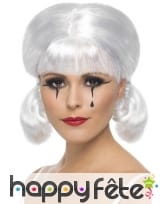 Cette perruque faite de cheveux synthétiques est bicolore, jouant sur des tons noirs et blancs.