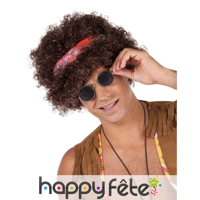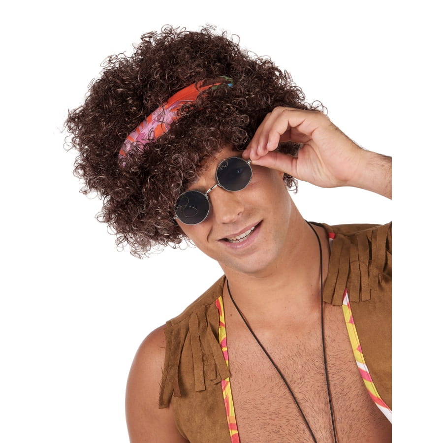 Complétez votre déguisement de hippie grâce à cette Perruque brune frisée afro style hippie.