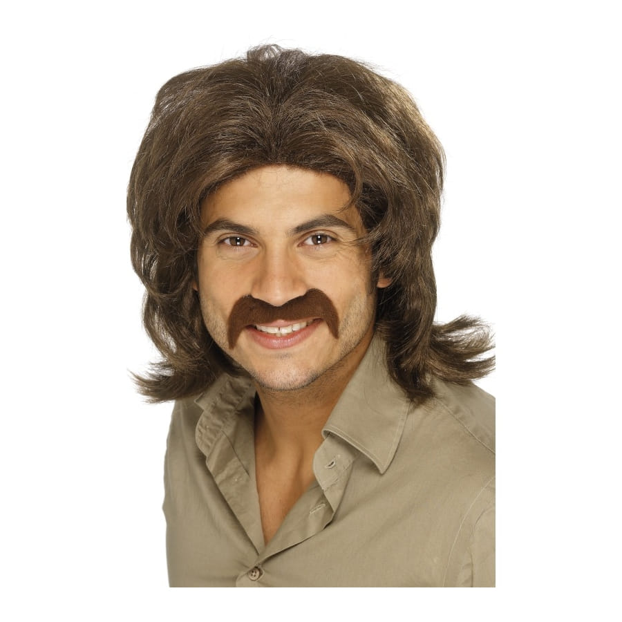Perruque de couleur châtain pour homme. Cet accessoire est entièrement inspiré du style des hommes des années 70, avec une coupe étudiée et arrivant aux épaules. Faites tomber ces dames avec votre tout nouveau style.