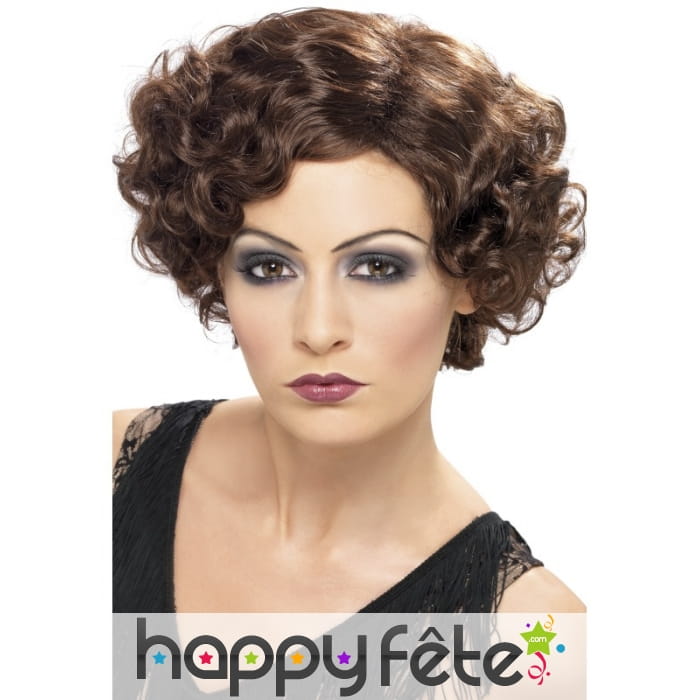 Perruque de jeune fille des années 20, de couleur brune, pour femme ou adolescente. Cet accessoire comporte des cheveux très courts et bouclés, avec une coupe fraîche et jeune. Arborrez un style nonchalant mais sophistiqué à la fois, comme les demoiselles des années Charleston!