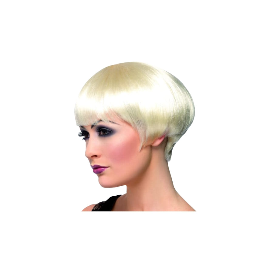 Perruque inspirée du look de la célèbre danseuse de cabaret, Liza Minelli. Cet accessoire pour femme est de couleur blond platine. Cette coupe courte et élaborée vous donnera un aspect très glamour et élégant pour une soirée Charleston ou cabaret. Vous pouvez également la porter seule, pour apporter du changement à votre look quotidien.