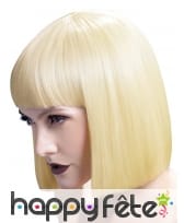 La perruque carré blond coupe droite avec frange pour femme est synthétique.