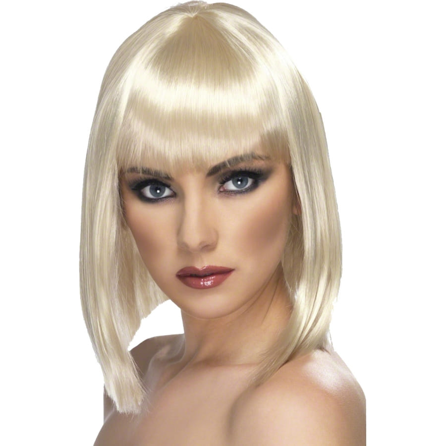 Perruque glam à coupe courte et carrée, avec frange, de couleur blonde, pour femme ou adolescente. Vous pouvez utiliser cette perruque pour changer complètement de style au quotidien ou pour agrémenter un déguisement.
