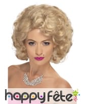 Il s'agit d'une perruque confectionnée à base de cheveux synthétiques blonds.