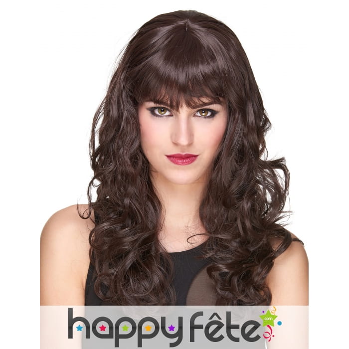Que ce soit pour un carnaval ou pour une soirée costumée, agrémentez votre tenue avec cette perruque châtain bouclée avec frange, luxe.