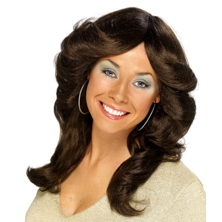 Perruque Farraw, pour femme, composée de belles boucles de couleur châtain. Avec cette perruque, vous adopterez un look de célébrité et vos amis ne vous reconnaîtront plus!