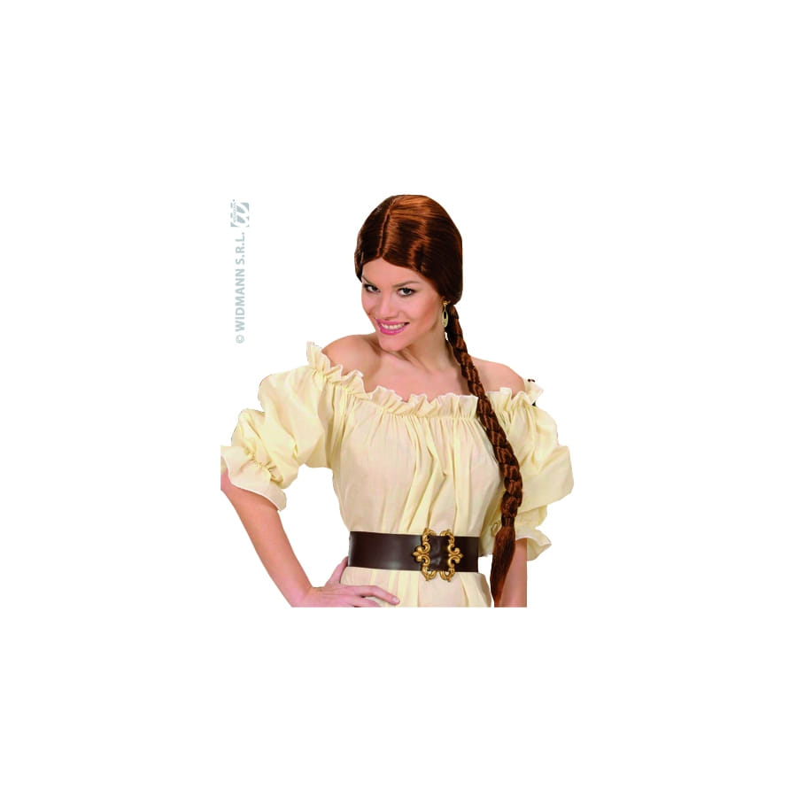 Longue perruque de châtelaine entièrement coiffée en une unique tresse. Cet accessoire pour femme est de couleur rousse. Grâce à cette perruque, vous pourrez compléter facilement une tenue de star, de dame du Moyen Age ou de séductrice.