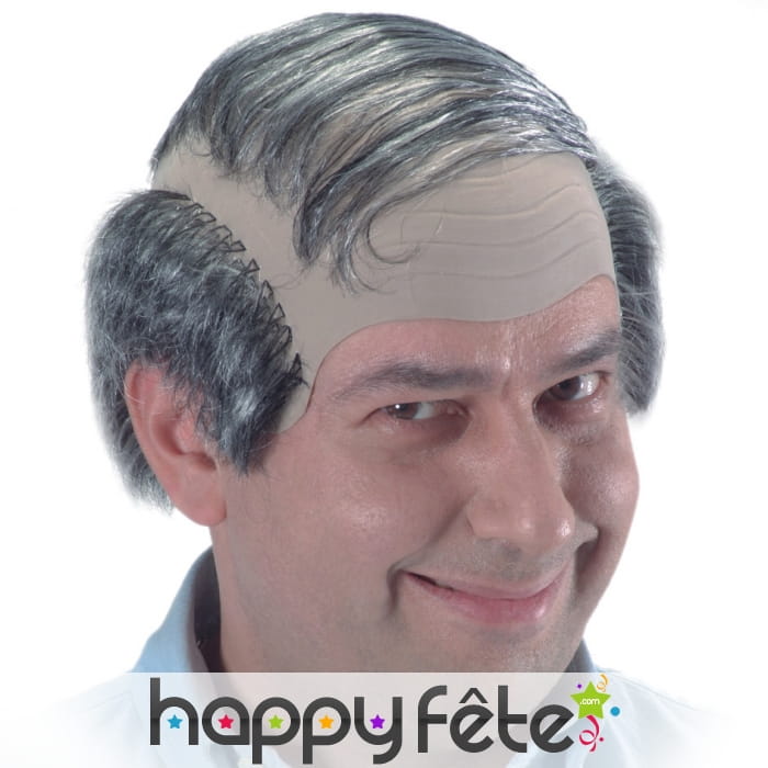 Voici une perruque cheveux gris et dégarnie pour homme.