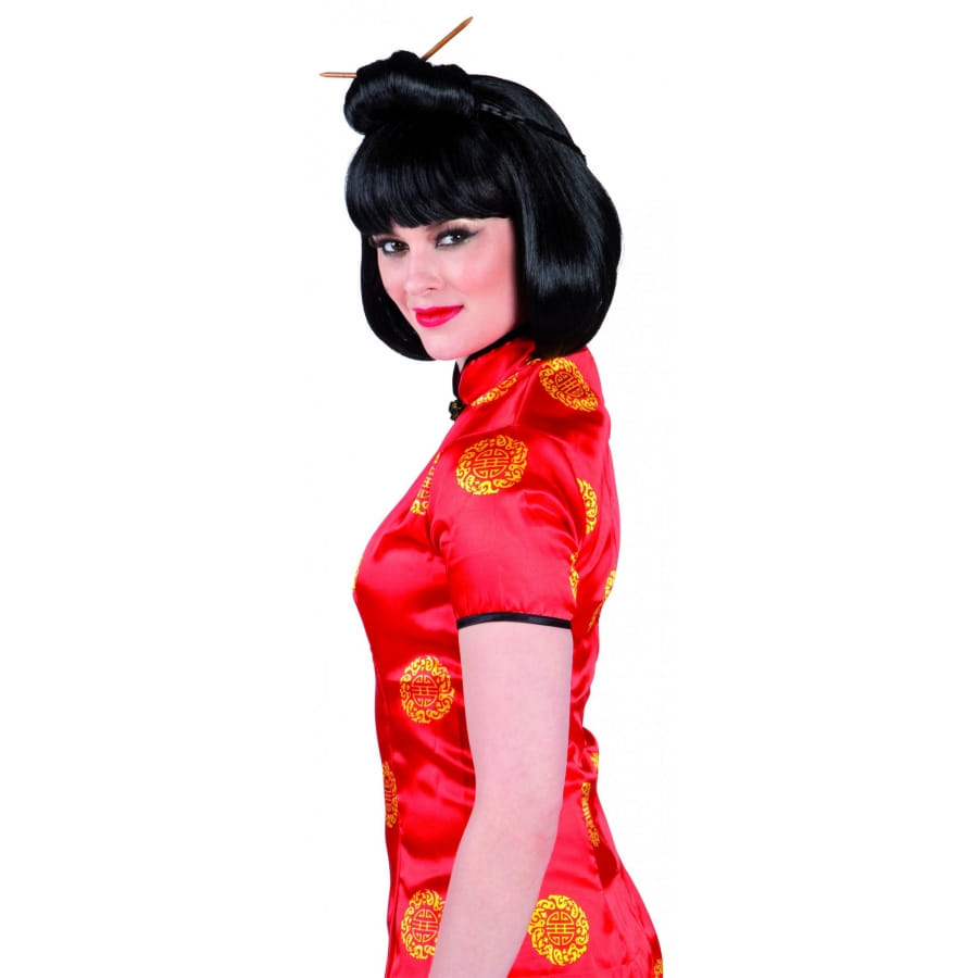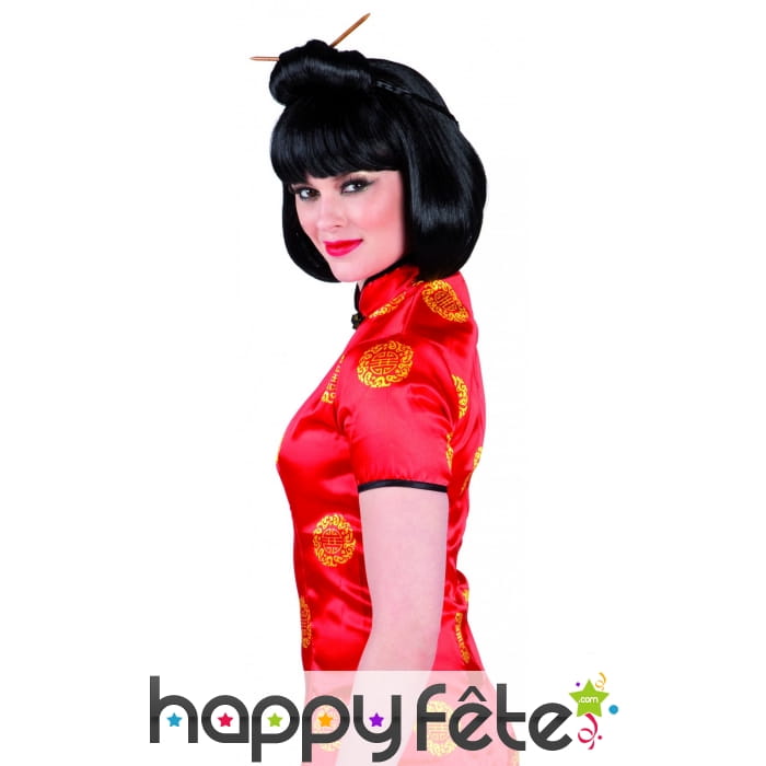 Resplendissez de grâce et de noblesse en arborant notre perruque chinoise noire avec chignon et tresses, qui complétera parfaitement votre kimono traditionnel.