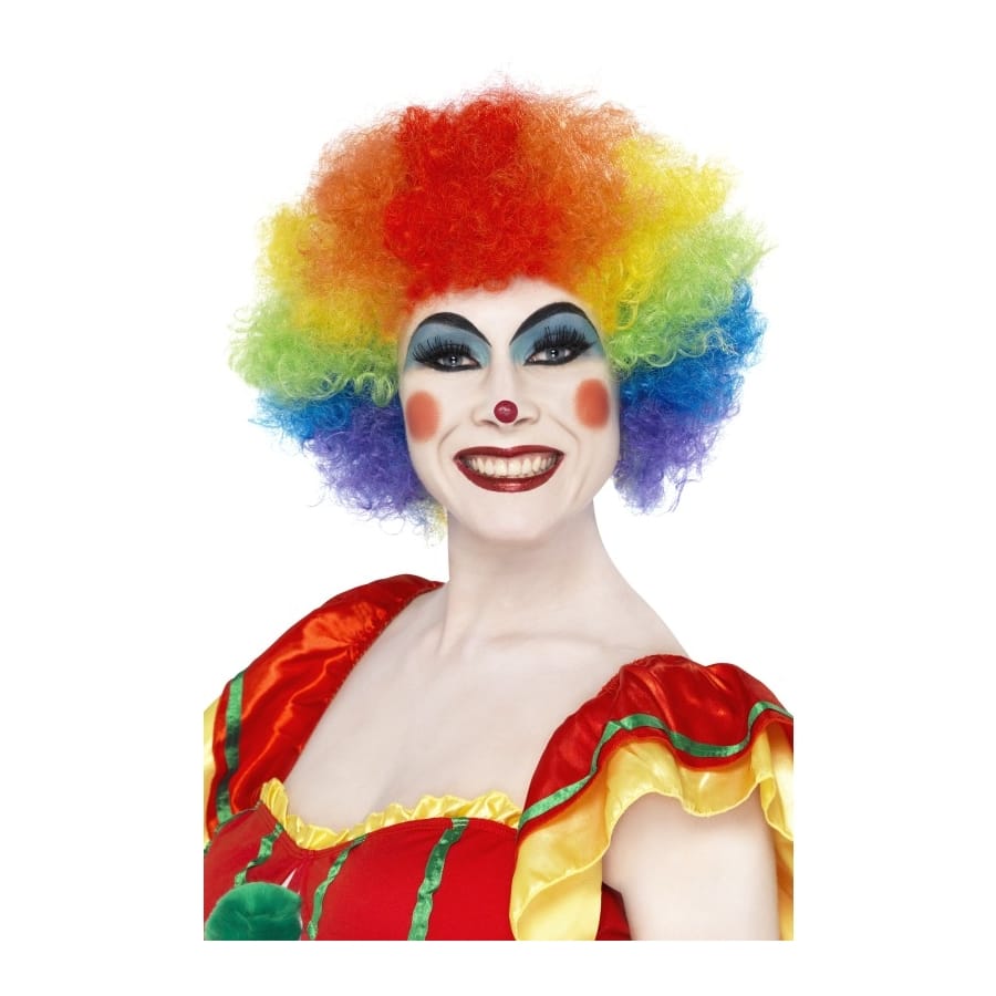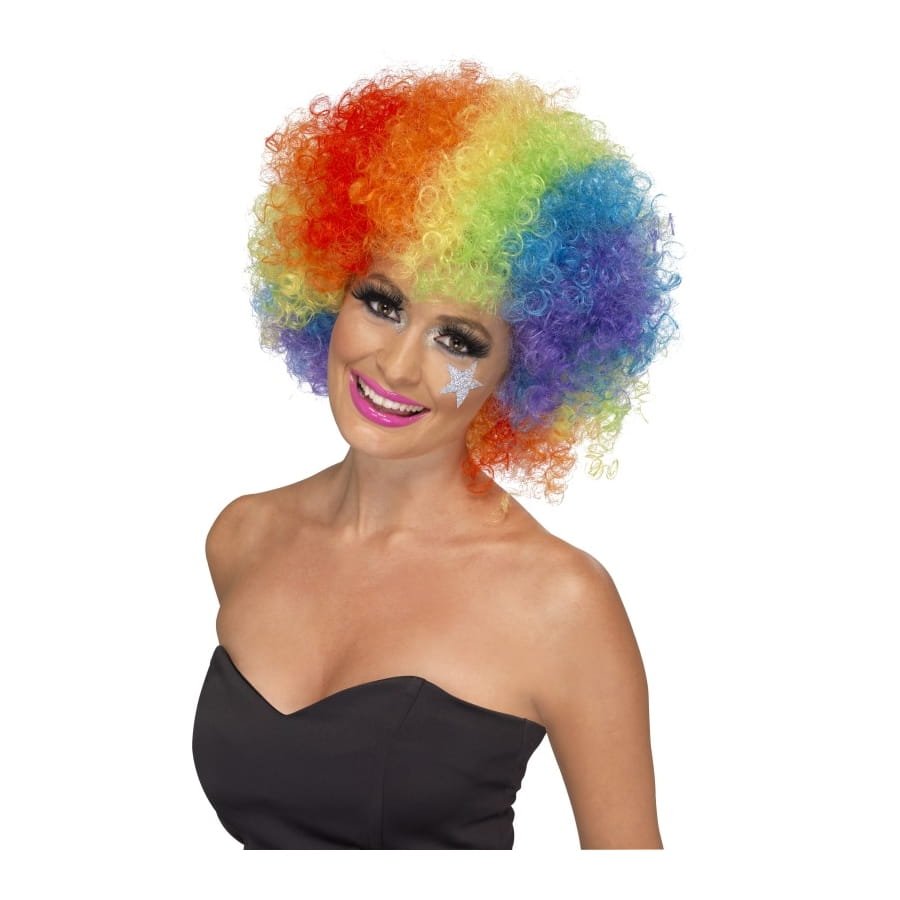 Perruque de clown afro de couleur arc-en-ciel, pour homme, femme, adolescent ou adolescente. Cette perruque agrémentera un déguisement de clown en y ajoutant encore plus de couleurs. Cela vous donnera un air joyeux et comique à la fois!