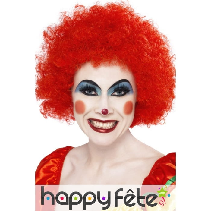 Cette perruque complètera votre déguisement de clown. Vous pourrez aussi la mettre pour un gouter d'anniversaire. Cette perruque de clown est rouge vif, assez volumineux, elle est frisé.