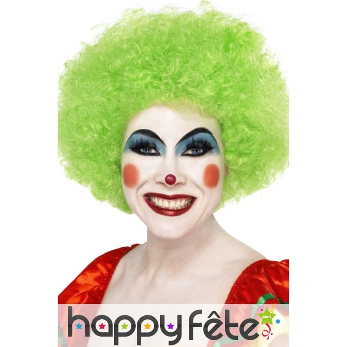 Perruque de couleur vert fluo, pour femme ou adolescente. La perruque est composée de cheveux courts et frisée et est très volumineuse. Elle est parfaite pour compléter un déguisement de clown pour un anniversaire ou un carnaval ou pour compléter un déguisement afro pour une soirée disco.