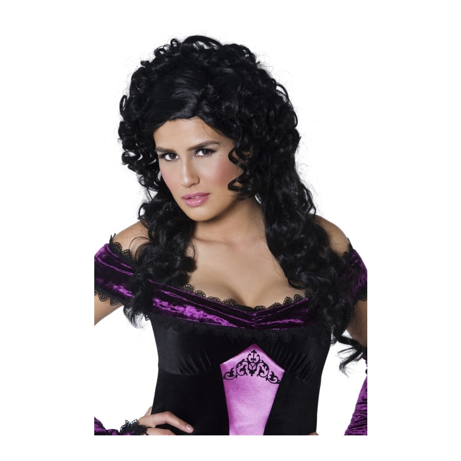 Perruque de comtesse de couleur noire, pour femme. Cet accessoire est constitué de cheveux bouclés retombant sur les épaules. En associant cette perruque à un déguisement de marquise, vous adopterez un look séducteur que personne ne pourra ignorer!