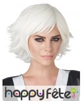 Dans sa coupe droite très courte, cette perruque possède une coloration blanche très vive.