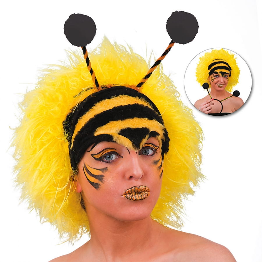 Une perruque d'abeille jaune avec antennes de fabrication européenne pourra compléter votre déguisement de Mia l'abeille lors du carnaval ou lors de tout événement festif.