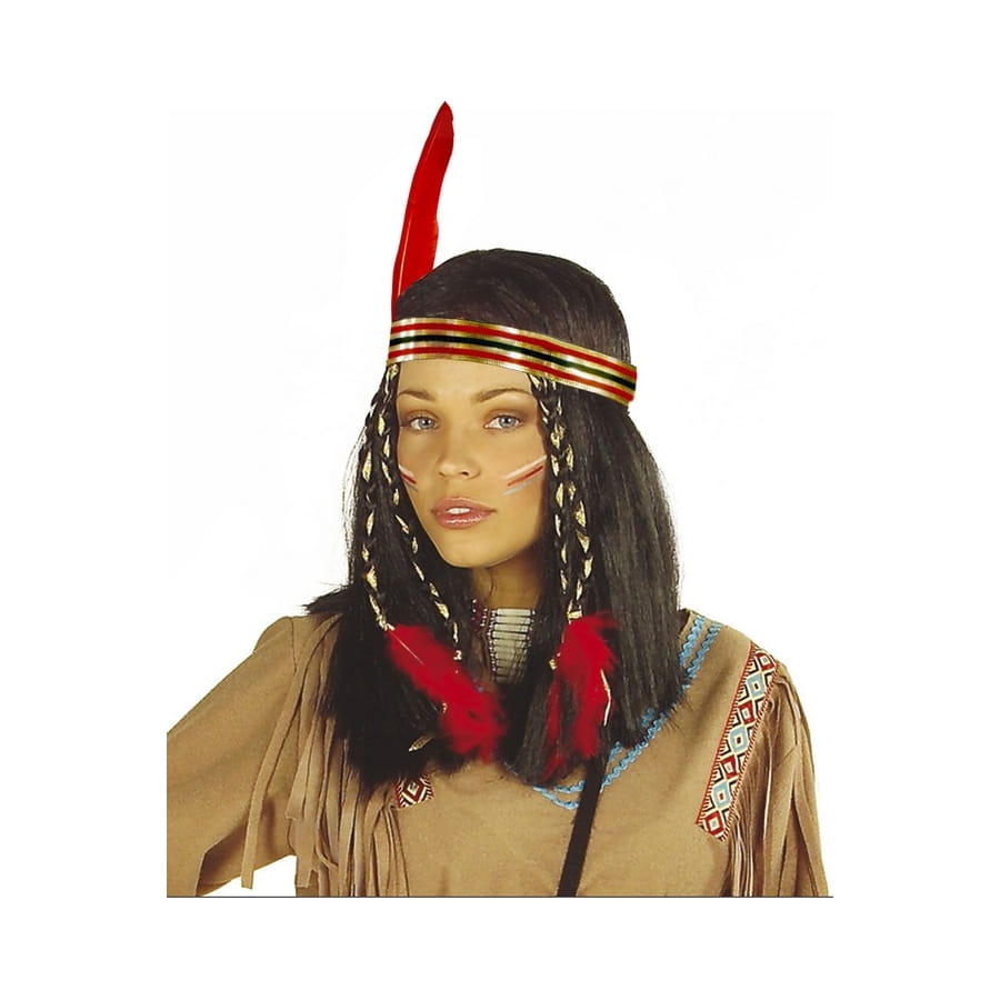 Si vous voulez vous transformer en Cheyenne pour une fête, vous aurez aussi besoin de cette perruque. De couleur noir, cette perruque vous transformera. Les cheveux sont mi-longs avec quelques mèches en tissu doré et il n’y a pas de perles.
