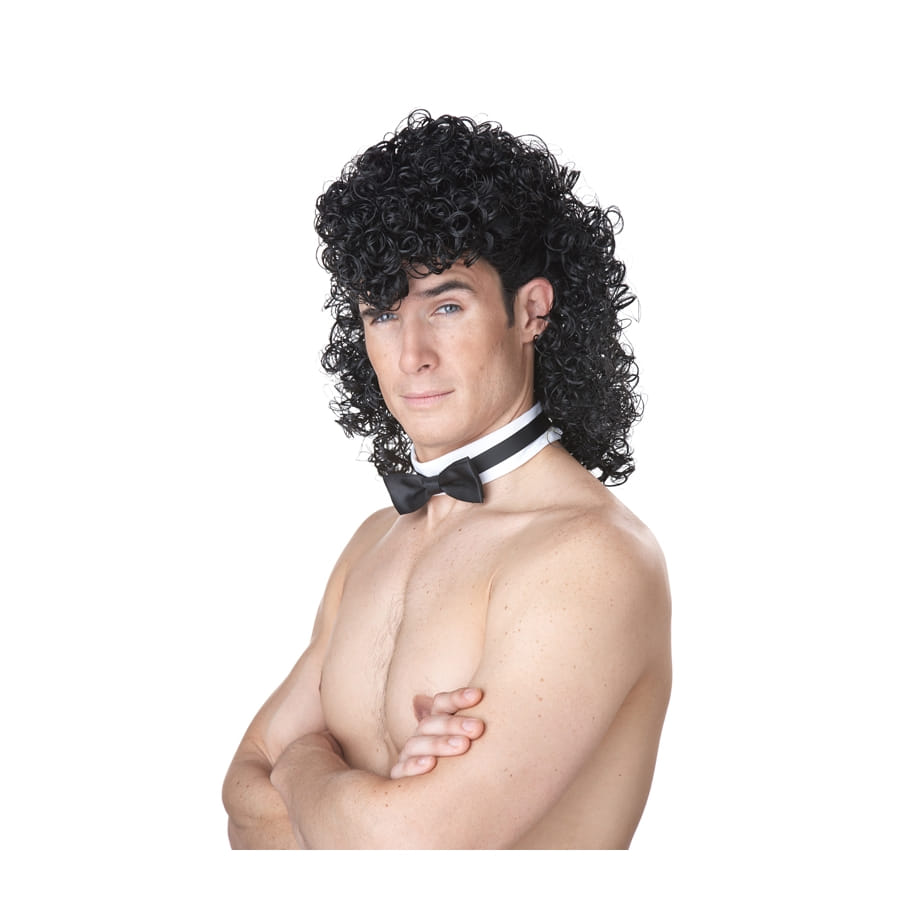 Devenez un sexy stripteaseur en un clin d'oeil avec cette perruque de chippendale, boucles serrées noires ! Celle-ci est dédiée à la gente masculine, constituée par de faux cheveux noirs bouclés. Cette perruque est semi-longue, avec une frange sur le milieu. Elle est déjà accompagnée d'un joli col noir et blanc avec un noeud papillon pour un look de chippendale réussi. Idéal pour une soirée de folie, un enterrement de vie de célibataire ou pour la Saint Valentin.