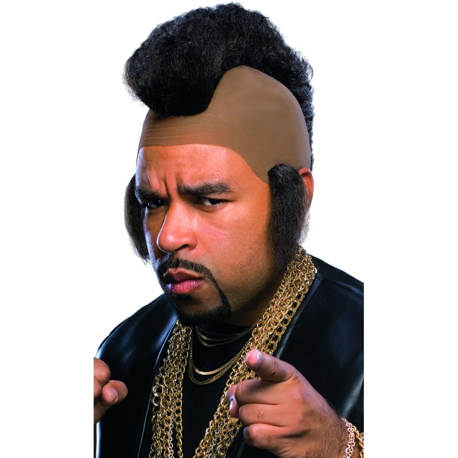 Perruque "Mister T", de couleur marron et noire, pour homme. La perruque est composé d'un faux crâne chauve, d'une crête et de favoris. Ajoutez-y les accessoires assortis pour vous déguisement en membre de l'Agence Tous Risques.