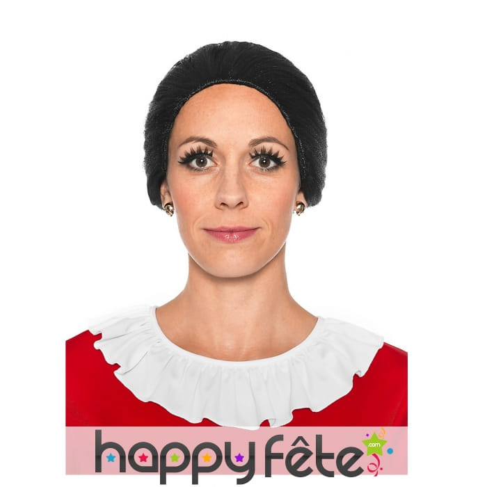 C'est une perruque particulière, qui est entièrement faite en polyester de couleur noire.