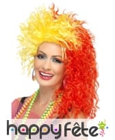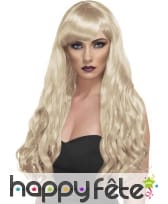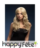 Cette perruque aux cheveux synthétiques jaunes est longue jusqu'aux épaules.