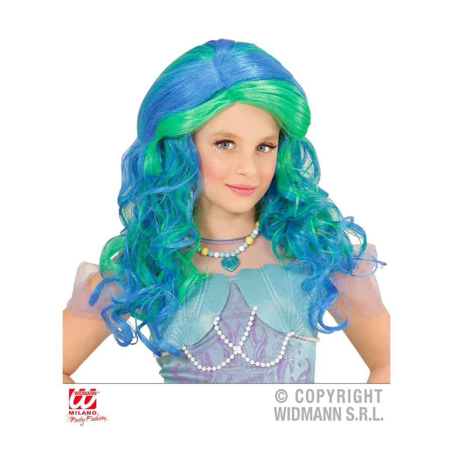 Pour son carnaval, offrez cette perruque de sirène turquoise émeraude pour enfant à votre petite. C'est une perruque qui mélange la couleur bleue turquoise et la couleur vert émeraude, elle est longue, ondulée jusqu'à hauteur de la poitrine, et présentant un certain volume sur la voûte. Vous pouvez vous procurer une tenue de sirène du côté de nos déguisements.