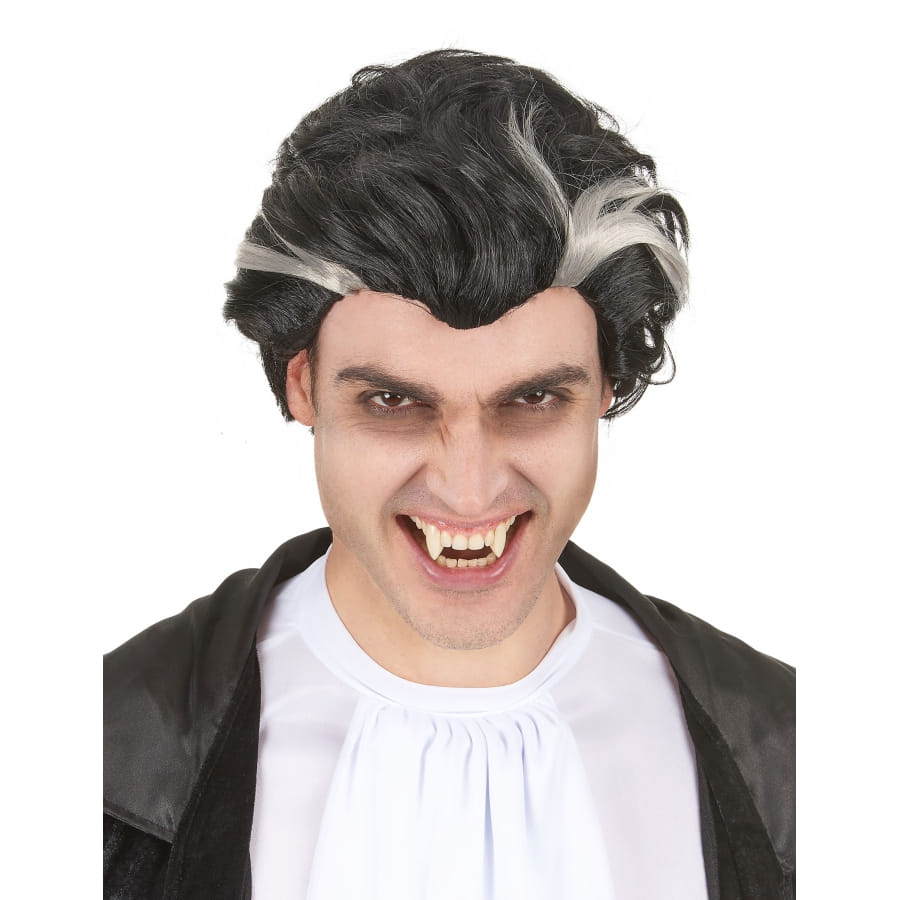 Mélangé à un costume de buveur de sang, cette perruque de vampire noire avec mèches blanches fera sensation pendant la soirée des morts.