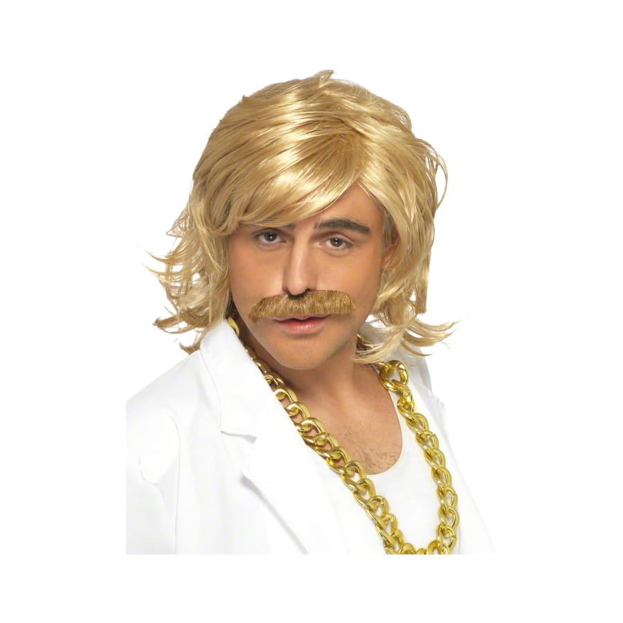 Pour une fête sur les années 80 et 90, pourquoi ne pas vous métamorphoser en vieux dragueur. Vous pourrez porter cette perruque aussi pour incarner un séducteur. Cette perruque est blonde , lisse et soyeuse, la moustache aussi est blonde.