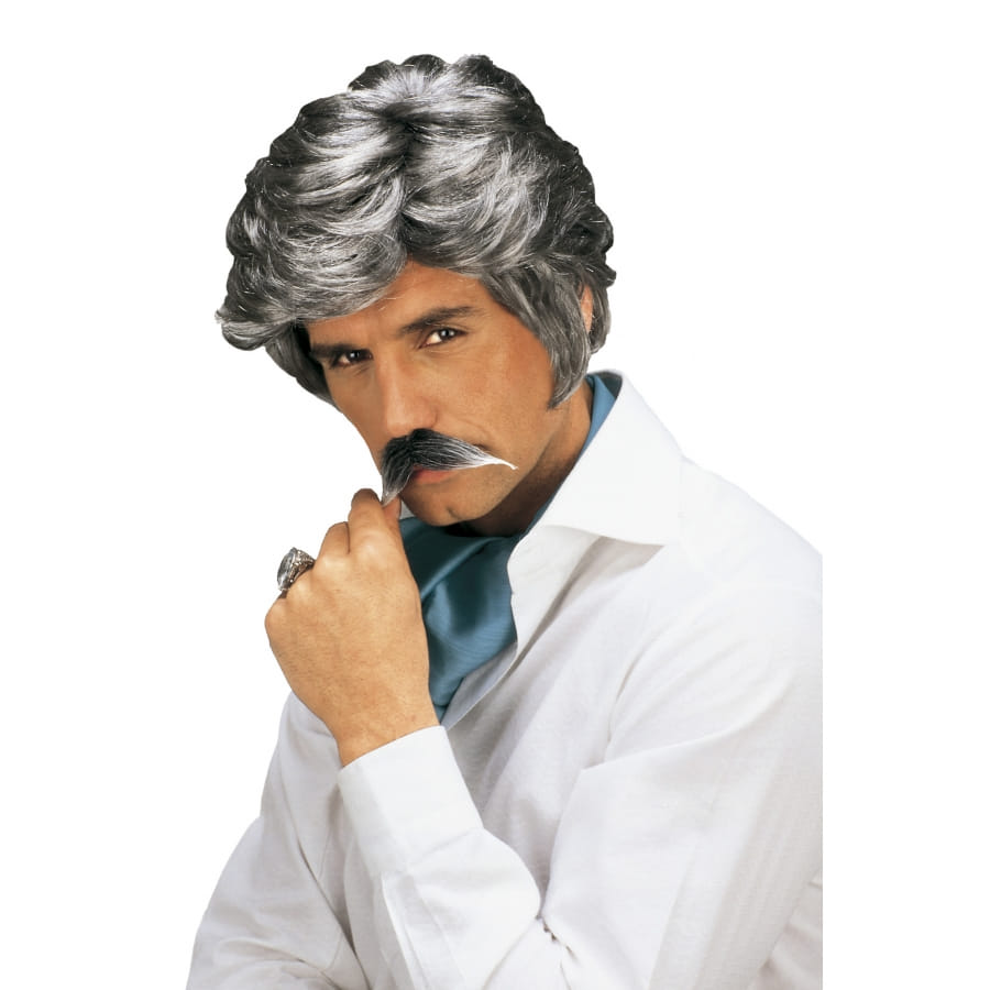 Perruque de vieux playboy avec moustache assortie. Cet accessoire pour homme est de couleur grise. Mettez-vous dans la peau d'un vieux séducteur rempli d'expérience pour faire tomber les dames autour de vous.