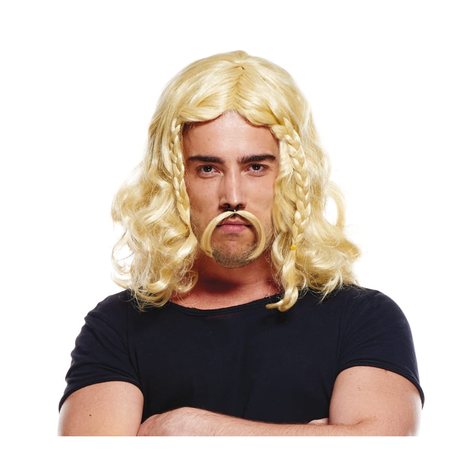 Pour ressembler à un viking, misez sur un accessoire infaillible ! Il n'y a rien de mieux qu'une perruque de Viking blonde avec moustache pour aller à une soirée déguisée. Vous aurez des cheveux blonds qui tombent jusqu'à la nuque, avec deux petites tresses sur le devant. La moustache qui va avec la perruque est aussi de couleur blonde.