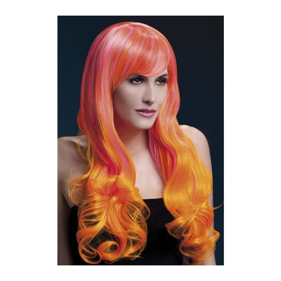 Avoir des cheveux magnifiques n'est pas donné à tout le monde ! Aidez-vous de cette fantastique perruque aux couleurs d'été ! C'est une longue perruque aux couleurs dégradées sur les pointes (du rose à l'orange). Les cheveux sont légèrement bouclés au niveau des extrémités. Les couleurs rose et orange sont réparties en parfaite harmonie sur tout le long de la perruque. Comme une sirène venue des profondeurs aquatiques, vous allez éblouir et séduire toute la salle!