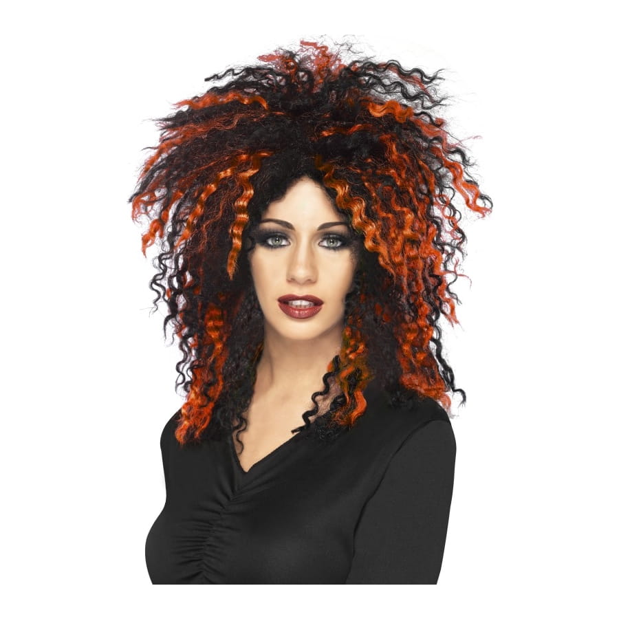Perruque de diablesse pour femme. Cet accessoire est constitué d'une multitude de mèches frisées de couleur rouge et noire arrivant aux épaules. Ils vous donneront un air diabolique et sexy à la fois.