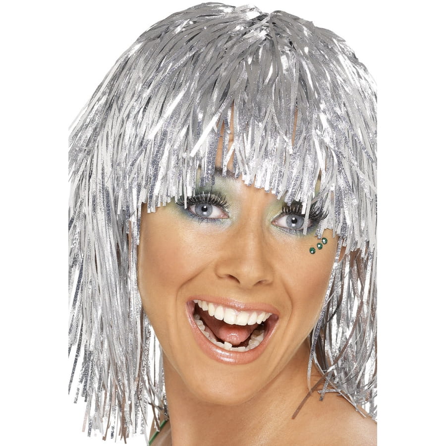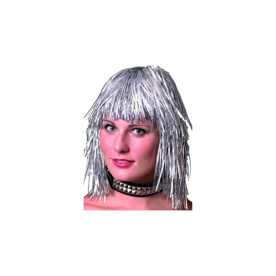 Perruque métal gaufrée à coupe courte de couleur argent pour femme. Cet accessoire fera refléter la lumière sur vos cheveux et attirera le regard de la foule. Ce soir, c'est vous la reine de la soirée!