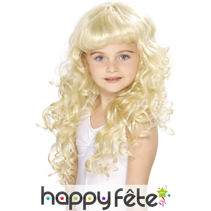 Votre petite fille sera une véritable princesse avec cette perruque. Elle pourra le porter pour un gouter d'anniversaire. Elle sera la plus belle des princesse, la perruque est blonde avec de belle ondulation ainsi qu'une frange.