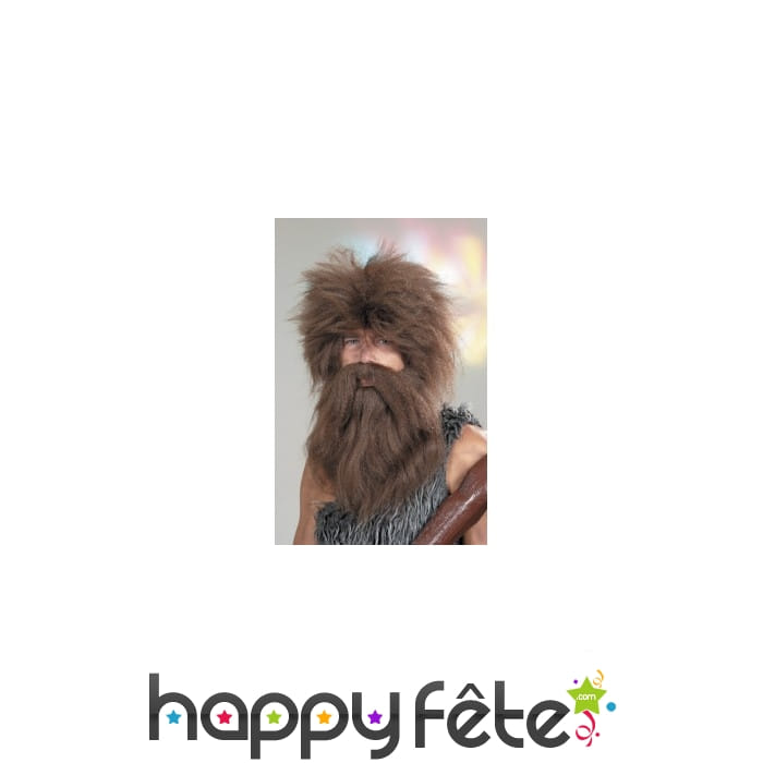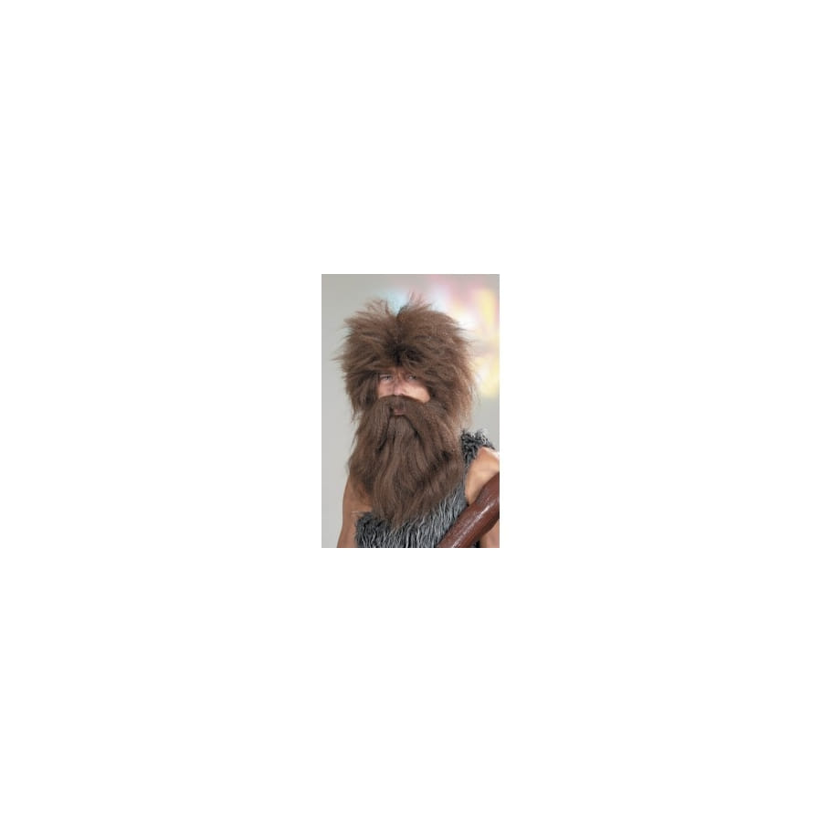 Retour à la préhistoire ! Voici un accessoire qui vous ramènera vers vos origines ! Messieurs, c'est l'occasion d'incarner un homme des cavernes. Muni de votre costume peau de bête et de votre gros gourdin en bois, vous aurez sûrement remarqué un détail qui manque. Voici la solution : une fantastique perruque de couleur marron, fournie avec une grosse barbe de la même couleur ! C'est un accessoire sous licence La Famille Pierrafeu. Il est tellement réaliste que vous pourriez aller jusqu'à réaliser un petit film amateur relatant votre vie antérieure !