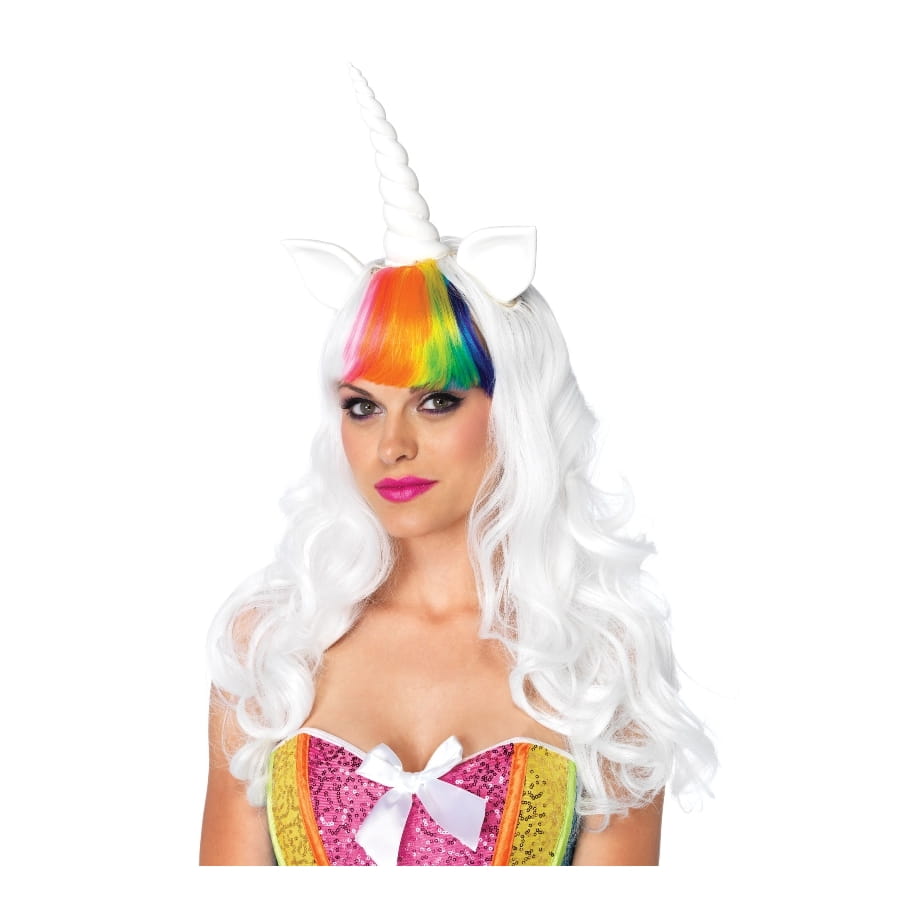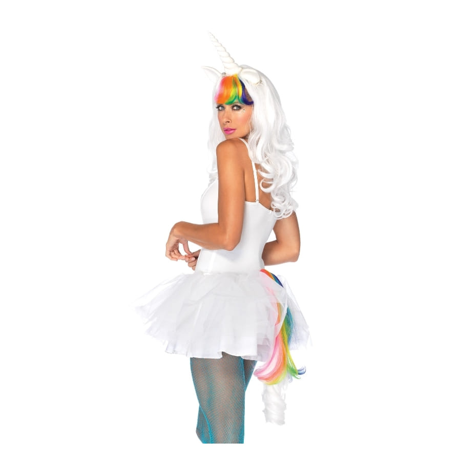 La fantaisie et l'imagination seront au rendez-vous quand vous porterez cette perruque et queue de licorne colorée pour adulte.