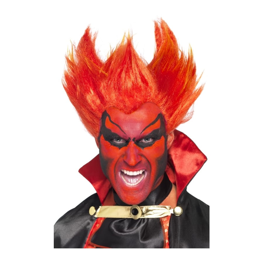 Perruque en forme de flamme de couleur rouge et jaune, pour homme. Cet accessoire est composé de cheveux fixés par un gel afin de donner l'impression que vous êtes ou que vous dégagez des flammes. Même à l'occasion d'Halloween, cette perruque ne passera pas inaperçue.