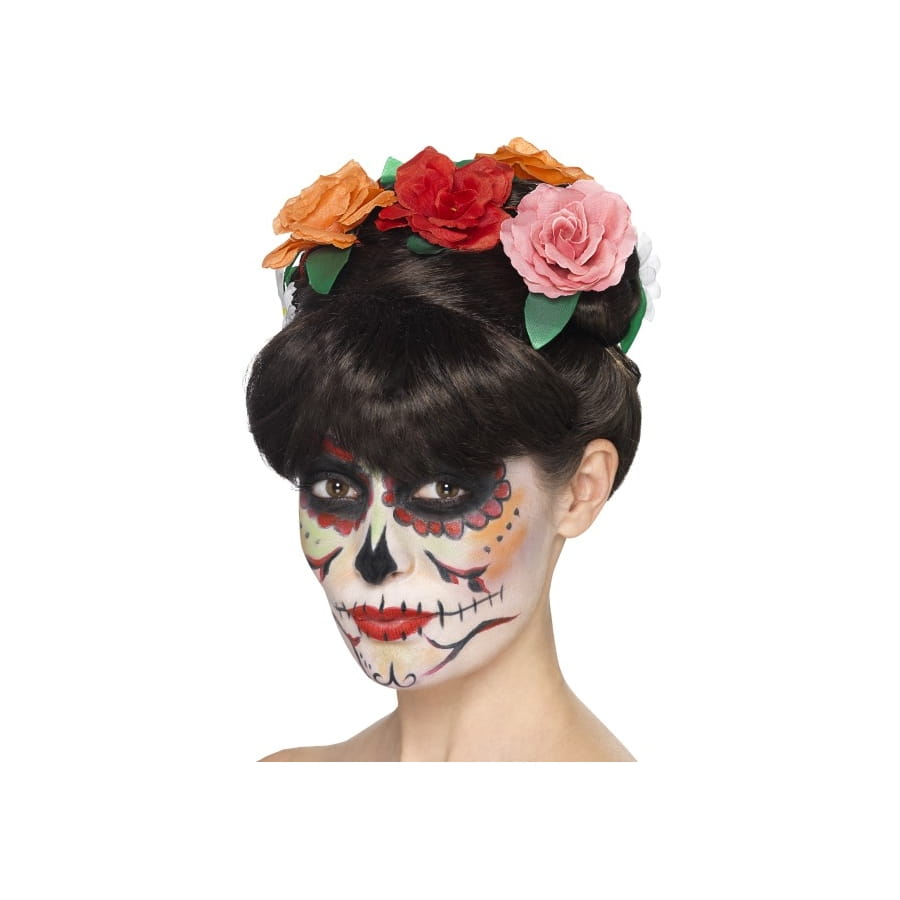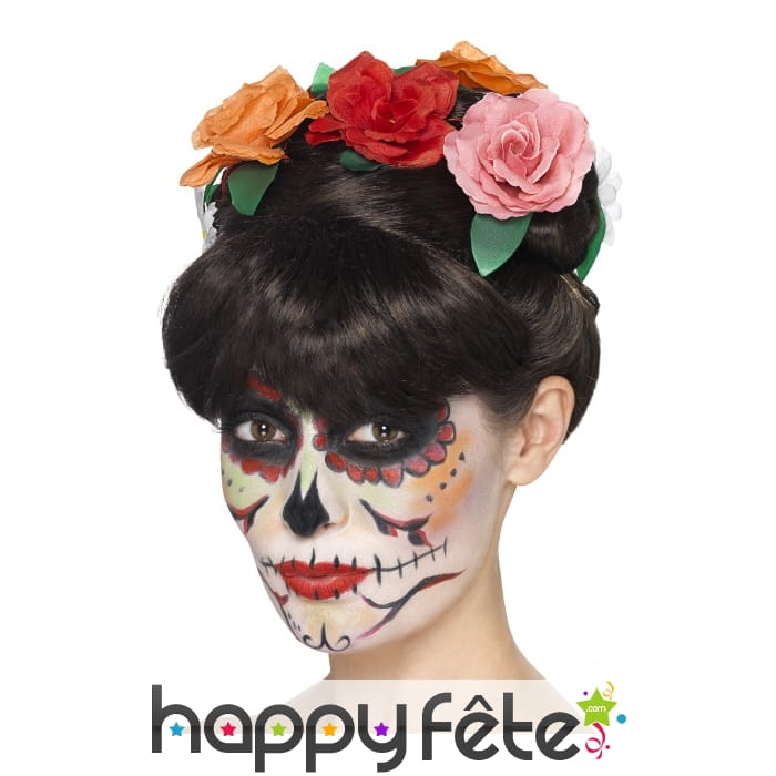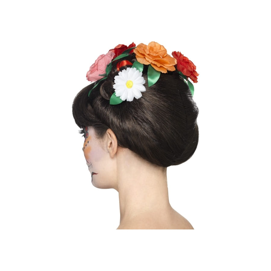 Vivez Halloween dans la splendeur de la culture mexicaine. Munissez-vous d'un accessoire qui s'inspire de la tradition du jour des morts au Mexique. La perruque fleurie jour des morts vous fera une magnifique coiffure. L'article est composé de cheveux de couleur noire montés en chignon, avec des franges. Quelques nattes ainsi que des fleurs multicolores agrémentent la coiffure pour créer une harmonie sans pareil !