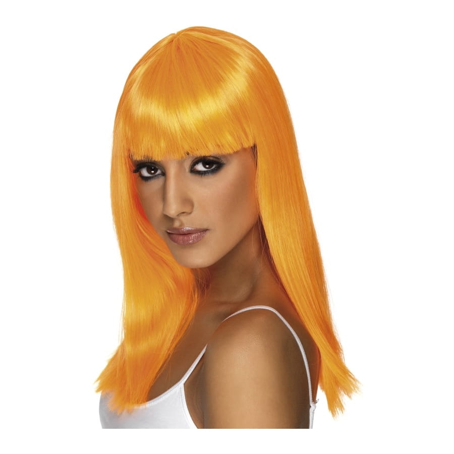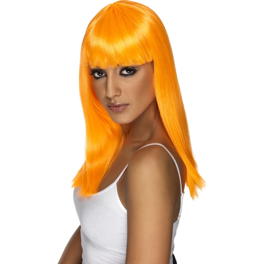 Vous brillerez avec cette longue perruque Glamourama lisse et droite avec frange. Cet accessoire de belle qualité pour femme est de couleur orange fluo. Cette perruque est parfaite pour compléter un déguisement de danseuse de cabaret chic et sensuel.