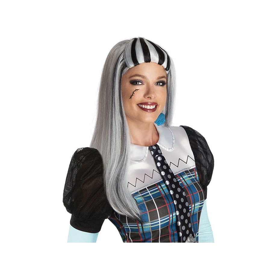 Incarner la fille de Frankenstein pour Hallloween est un grand défi ! Heureusement que vous pouvez disposer de cette magnifique perruque sous licence Monster High. Eh oui, la ravissante Frankie Stein veut bien vous prêter sa chevelure. Vous aurez alors de longs cheveux raides de couleur blanche et noire. N'oubliez pas d'esquisser une petite cicatrice sur votre visage et de porter des vêtements assortis. Vous serez alors une vraie monstre fashionista !