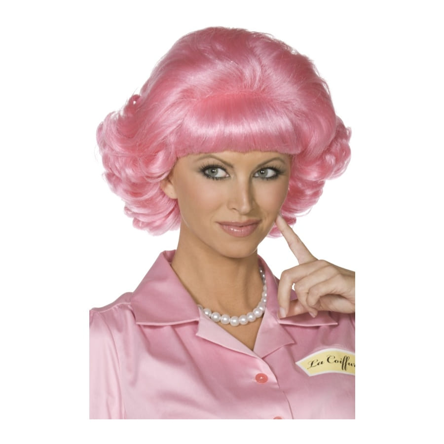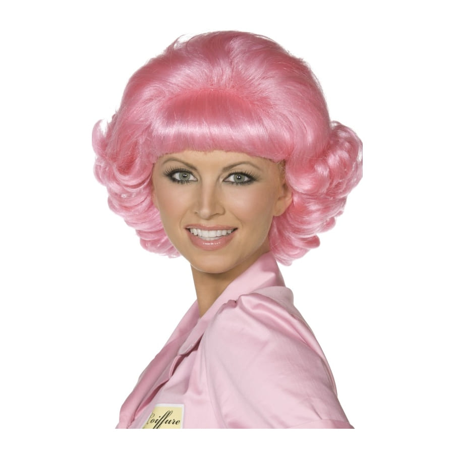 Perruque "Frenchy" de couleur rose, pour femme. Le brushing de la perruque est parfait, avec des boucles très légères et une jolie frange. Cette coupe rappelle pertinemment celle de "Frenchy" dans le très célèbre film "Grease". A vous de vous incarner en "Pink Lady" pour une soirée disco de folie!