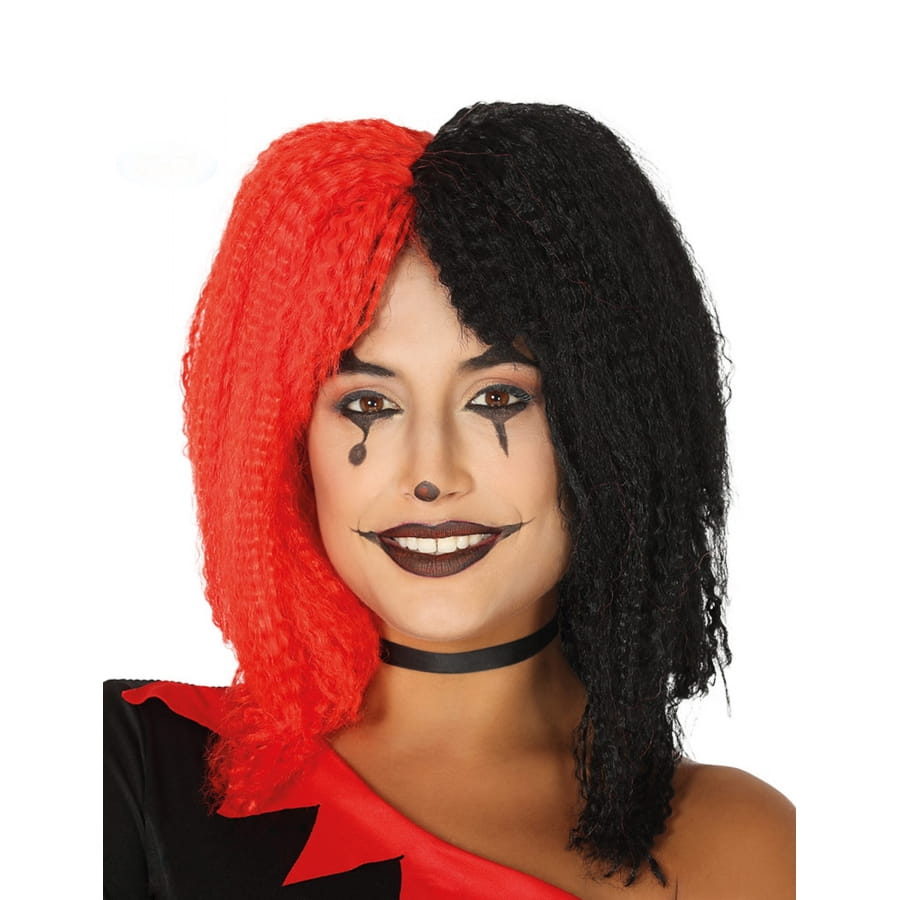 La perruque gaufrée un côté noir et l'autre rouge est synthétique.